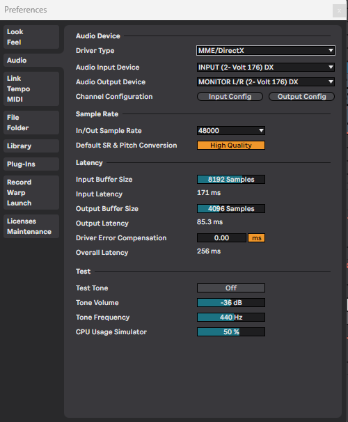 Now, head to the audio section of the preferences. Here we can switch the audio driver, so in most cases you might be used to producing using ASIO drivers, or your audio interface driver. In my case I am using my Universal Audio Audio driver. We need to change this to MME/Directx driver for windows. The reason for this is because ASIO drivers do not let you route the audio anywhere else. So, with our MME/.Directx driver (or whatever default desktop audio you have), you can route that audio to SYQEL automatically. For our output, we can just choose our default output.