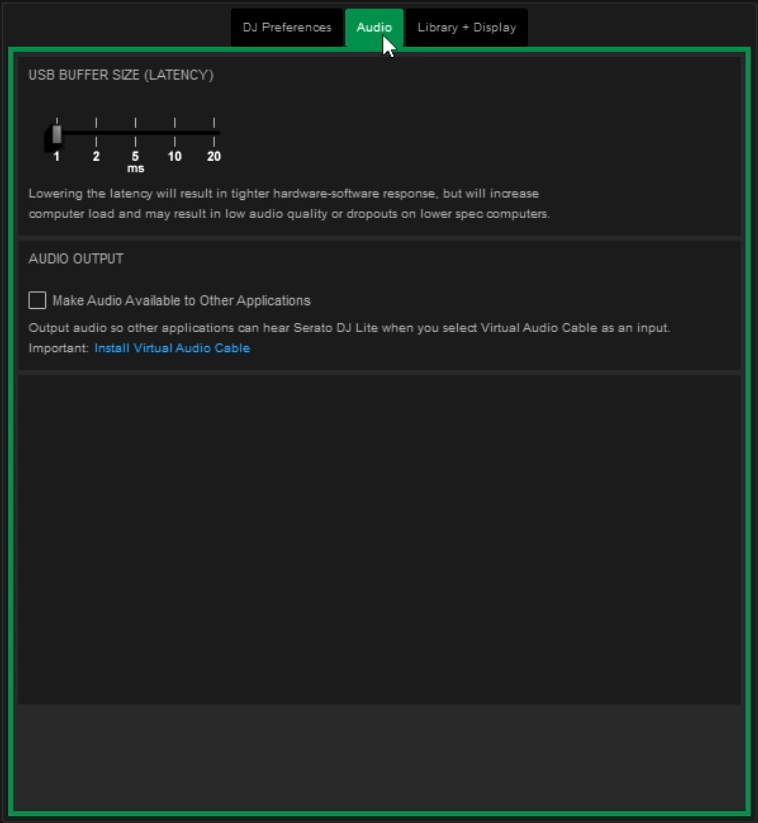 For users on mac, within the same audio settings, you will be prompted to download and install Serato’s own audio sharing application. This is essentially the same as downloading Loopback, which is another program that allows us to route audio from Serato to SYQEL. You can download and install either, just make sure to check that “make audio available to other applications box” as well.